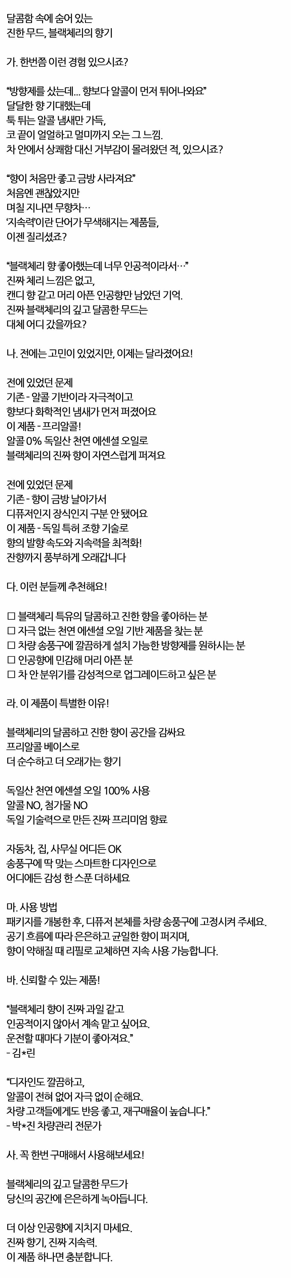 진한무드 블랙체리 향기 자동차 송풍구형 디퓨져 50ml