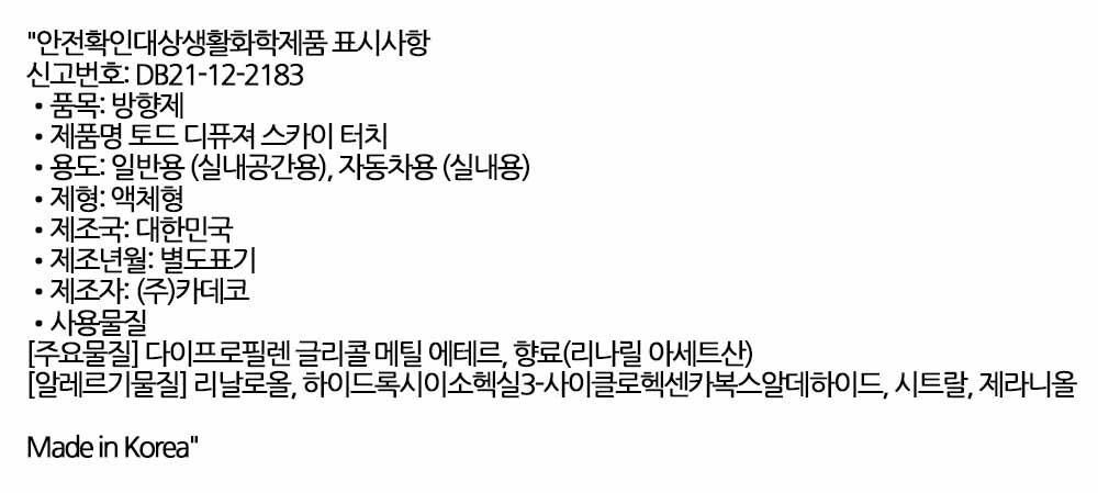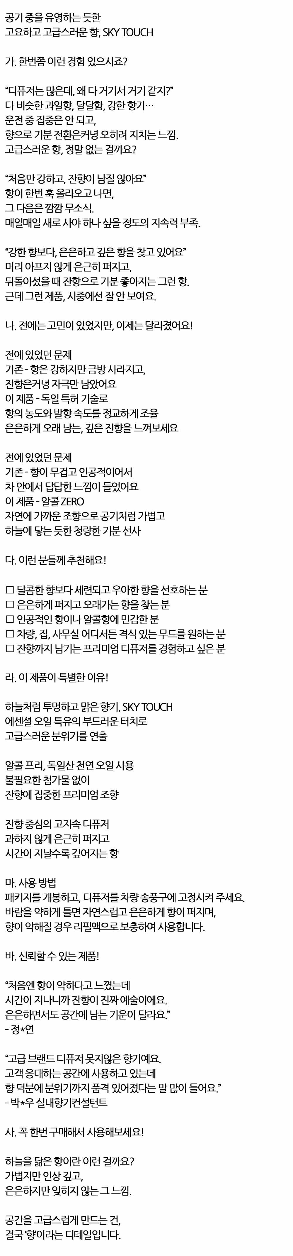 하늘처럼 맑은 향기 자동차 송풍구형 디퓨져 50ml