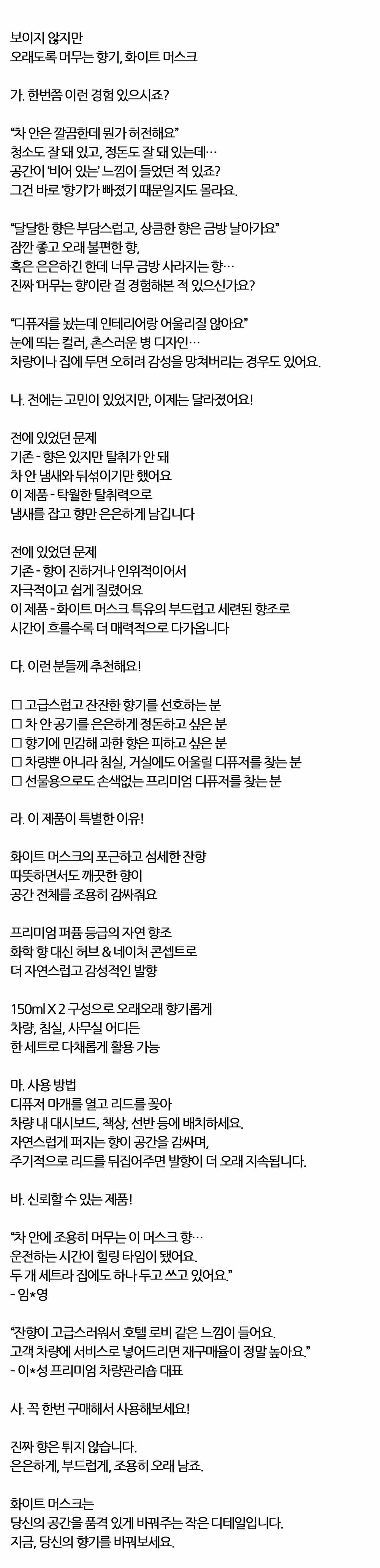 화이트머스크 부드러운 무드 자동차 디퓨져 150ml 2입