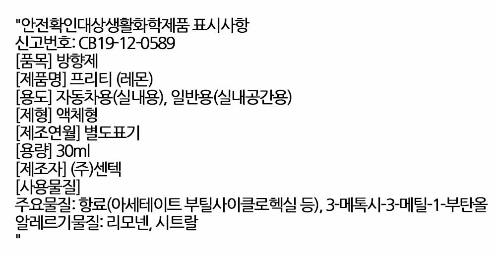 지친공기 깨우는 레몬 자동차 송풍구장착 방향제 30ml