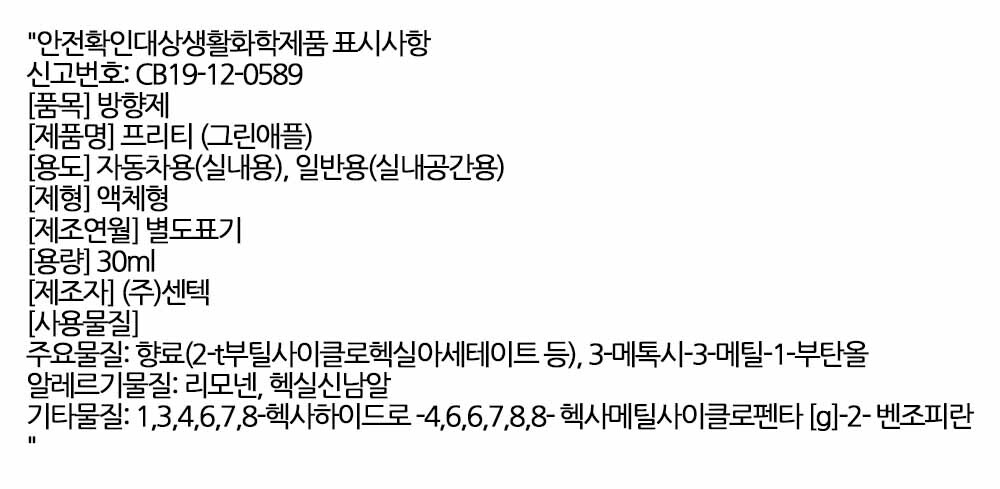 싱그러운 초록 사과향 자동차 송풍구장착 방향제 30ml