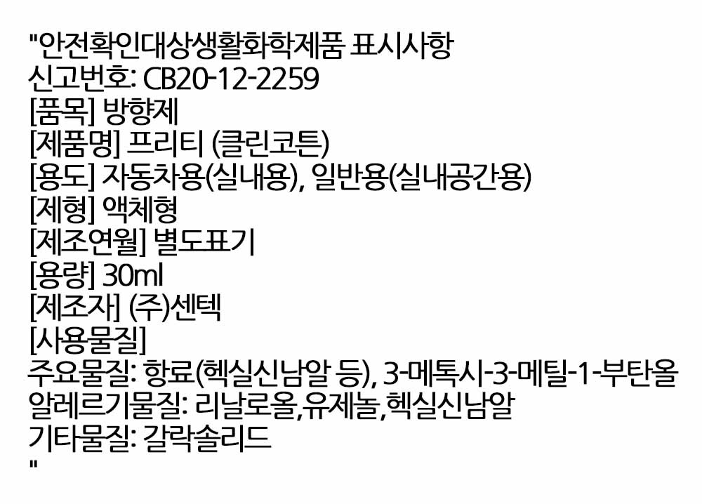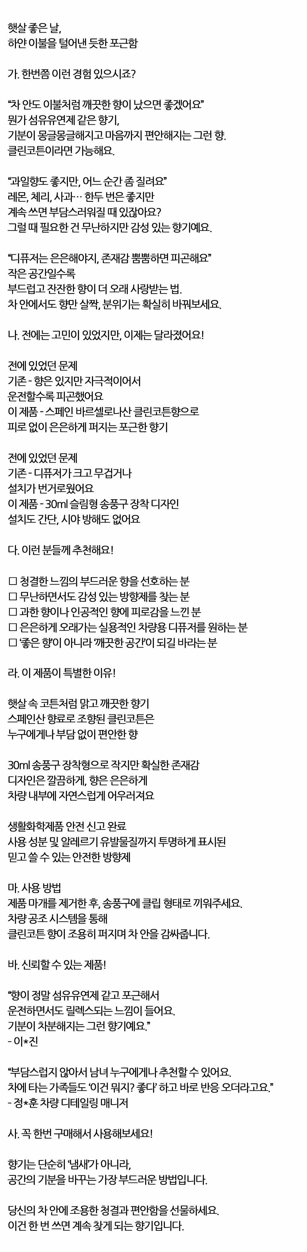 부드럽고 포근한 향 자동차 송풍구장착 방향제 30ml
