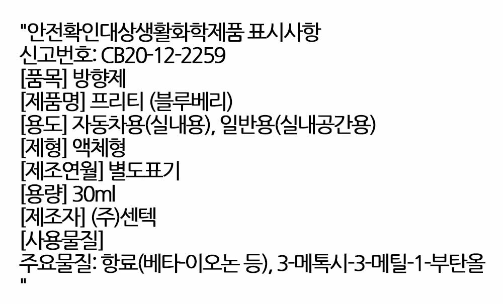 상큼달콤 블루베리 향 자동차 송풍구장착 방향제 30ml
