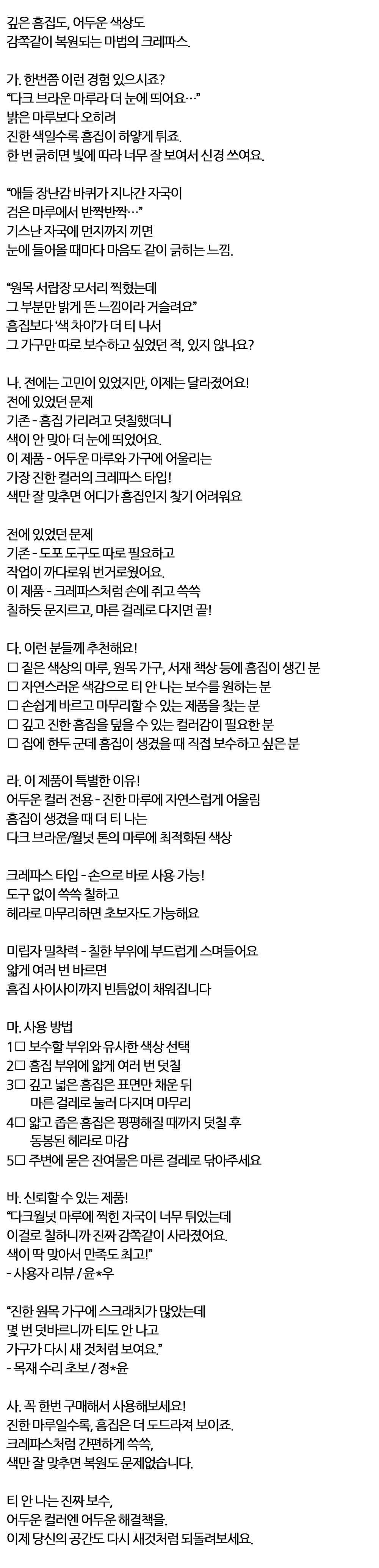 보기 싫은 마루 흠집 색칠하듯 쓱쓱 보수제 어두운색
