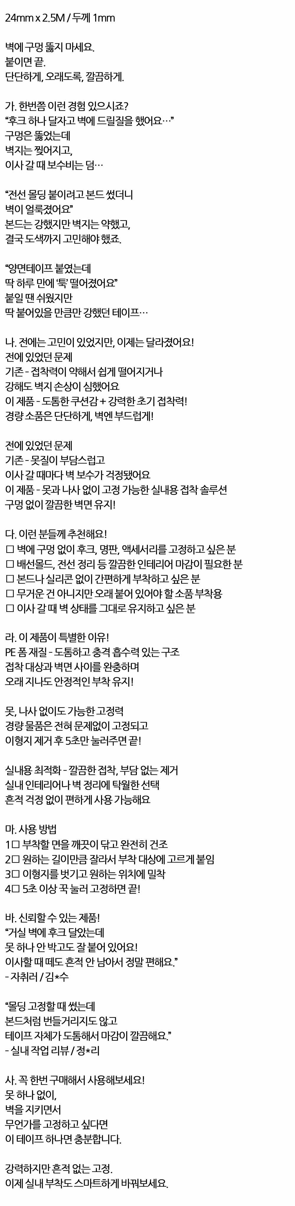 벽에 구멍 하나 없이 깔끔히 고정 백색 폼양면 테이프