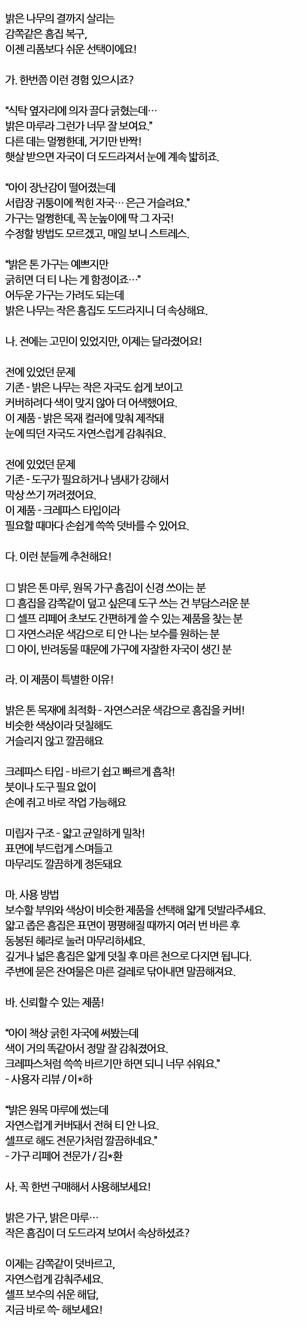 나무의 결까지 살리는 감쪽같은 목재흠집보수 밝은색