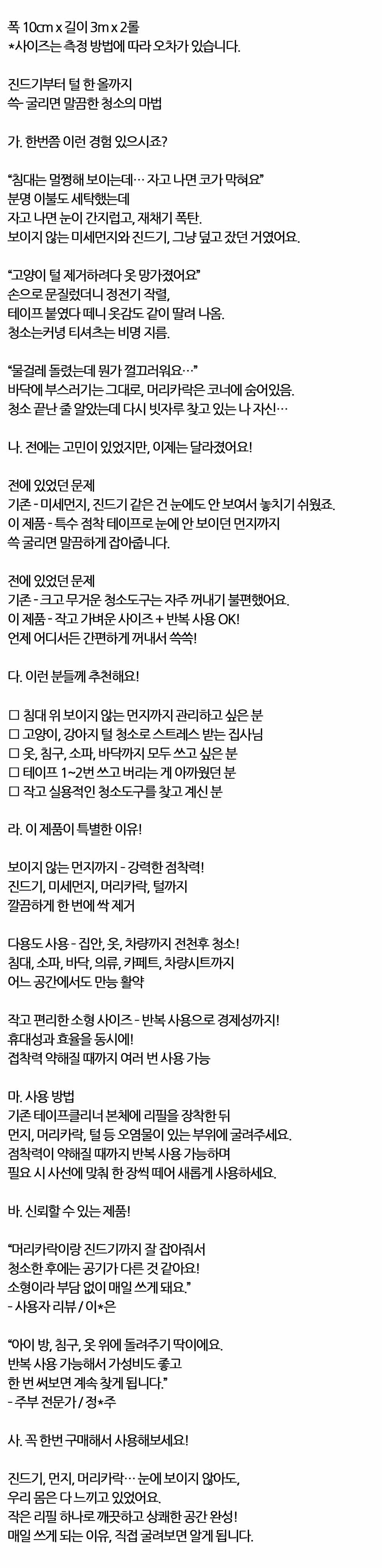 진드기부터 털 한 올까지 청소 테이프클리너 리필 2입