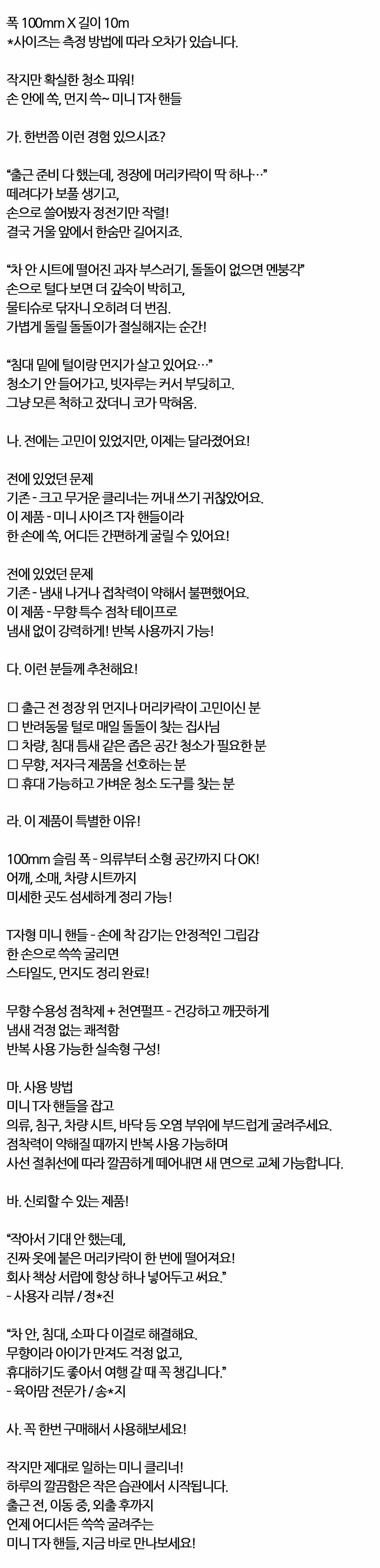 차 안 시트에 떨어진 과자 부스러기 T자 테이프클리너