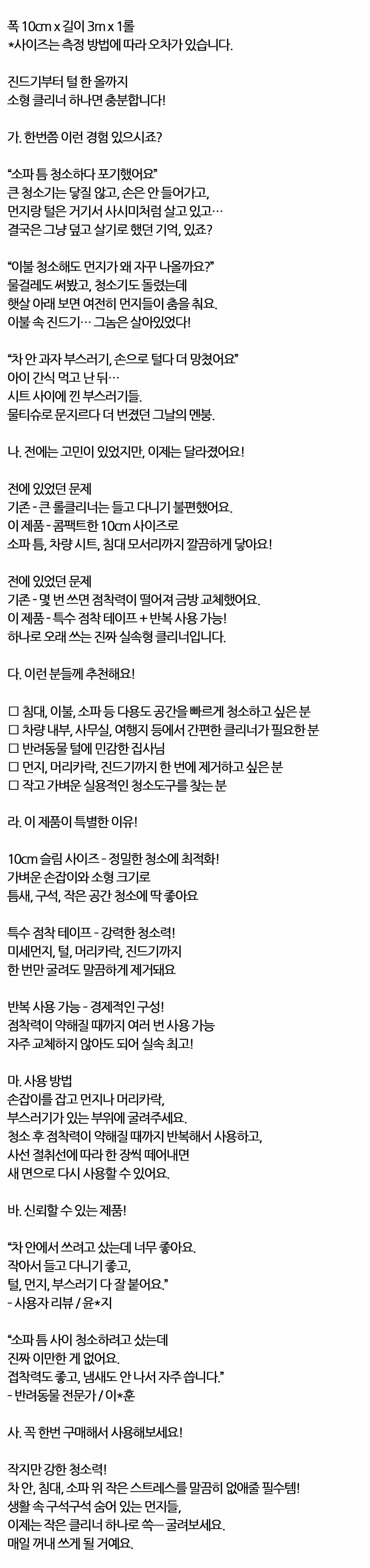 한 번만 굴려도 말끔하게 제거돼요 청소 테이프클리너