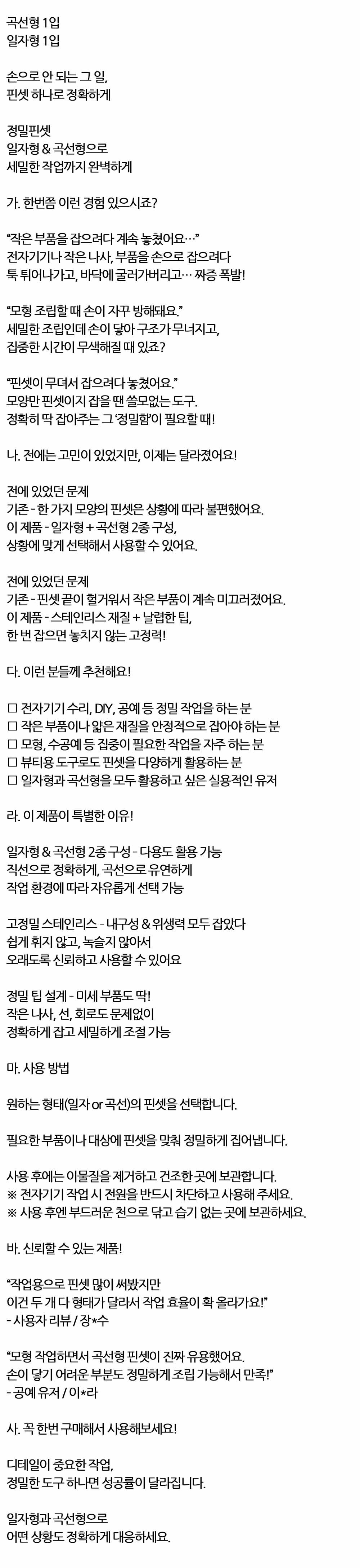작은 부품을 잡으려다 계속 놓쳤어요 정밀핀셋 2입