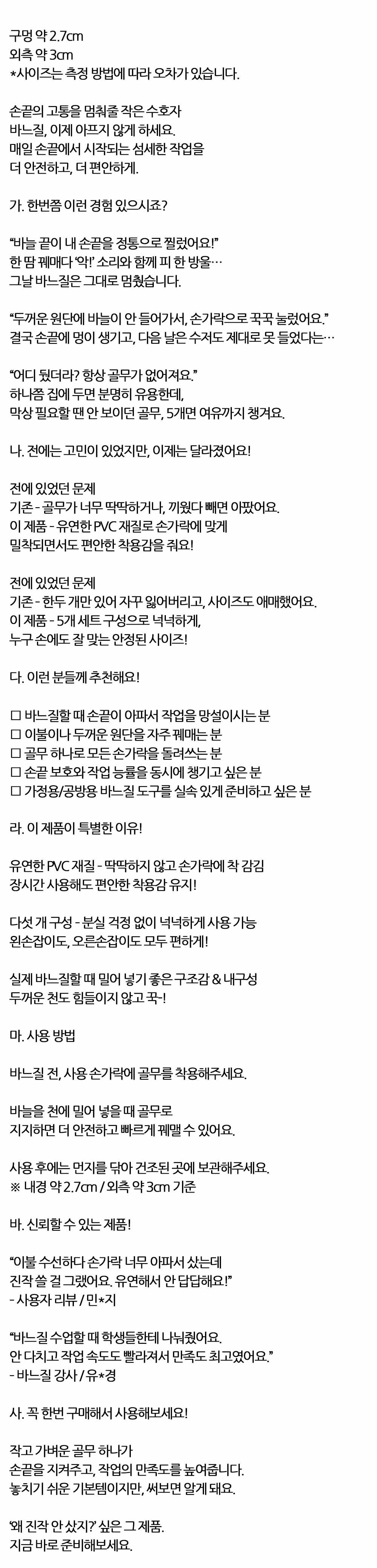 바느질 이제 아프지 않게 하세요 수선 손가락골무 5입