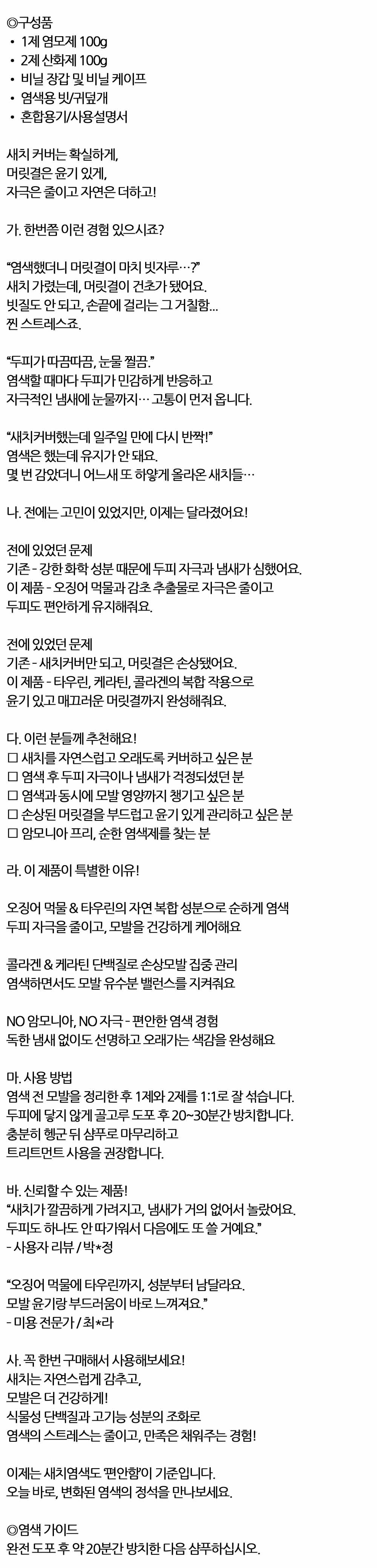 독한 냄새없이 선명하고 오래가는 먹물 헤어염색 흑색