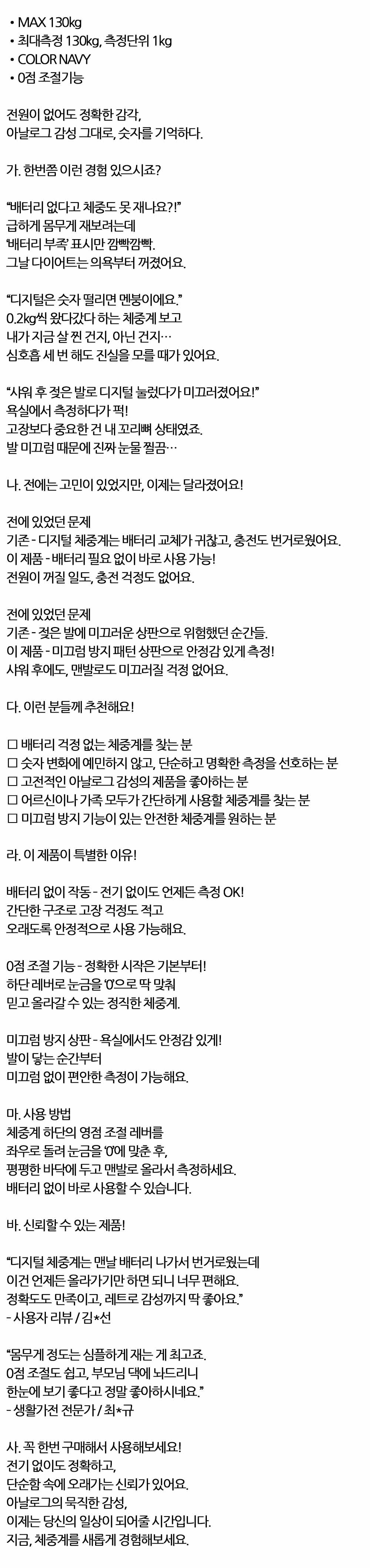 배터리 없이 작동 정확한 감각 아날로그 감성 체중계