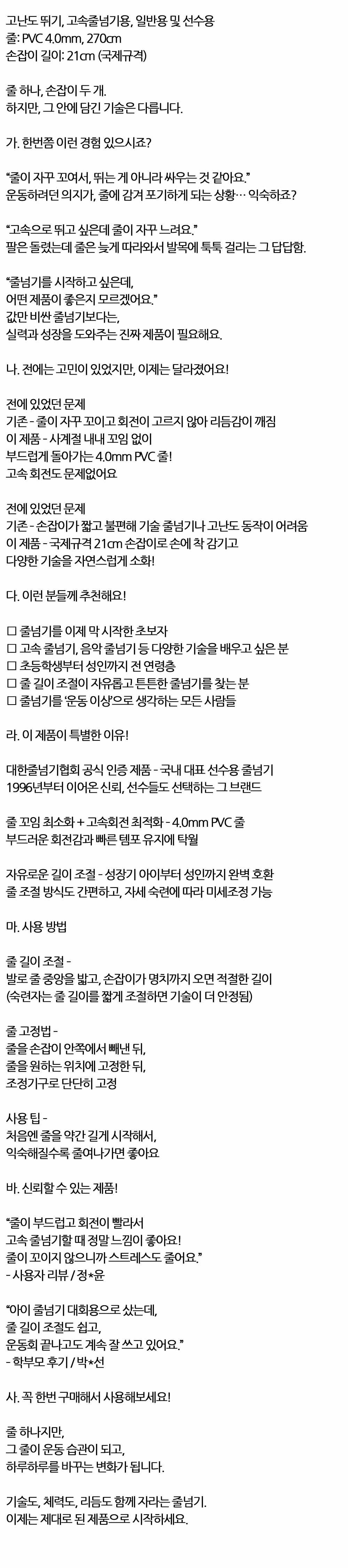 부드러운 회전감과 빠른템포 유지에 탁월 줄넘기 레드