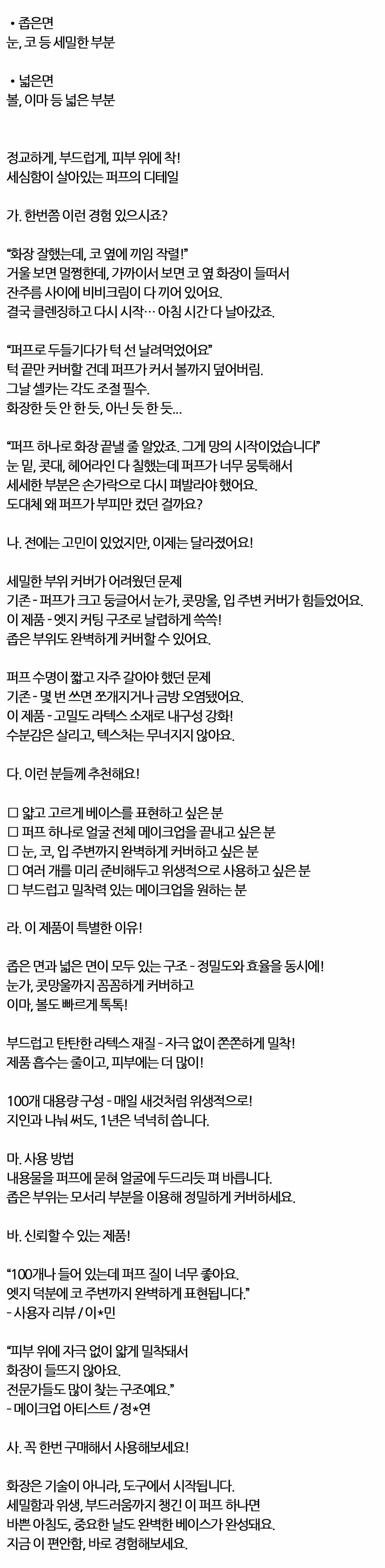 좁은 면과 넓은 면이 모두 있는 라텍스 엣지퍼프 100P