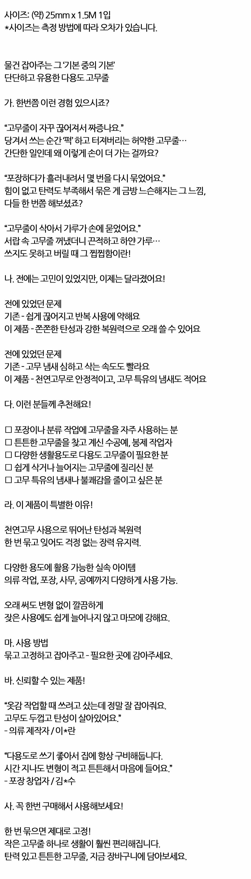 의류작업 포장 사무 다용도 노랑생고무 1.5M 1P 10봉