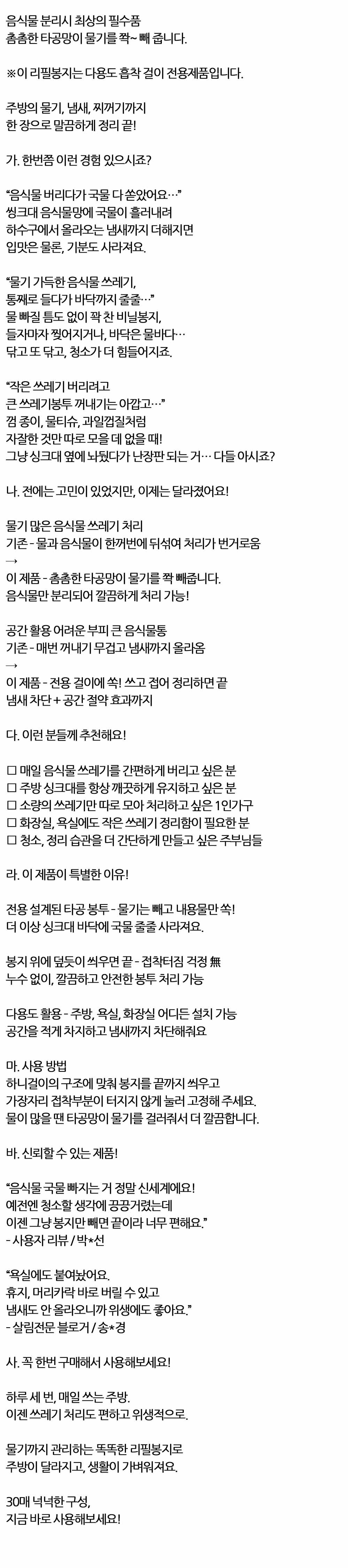 음식물 처리 다용도 흡착 걸이 전용 리필봉지 30매