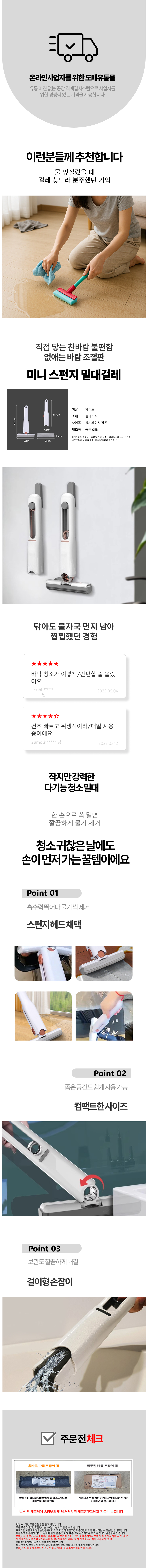 매직 원터치 물기 흡수 대걸레 밀대 걸레 청소기용