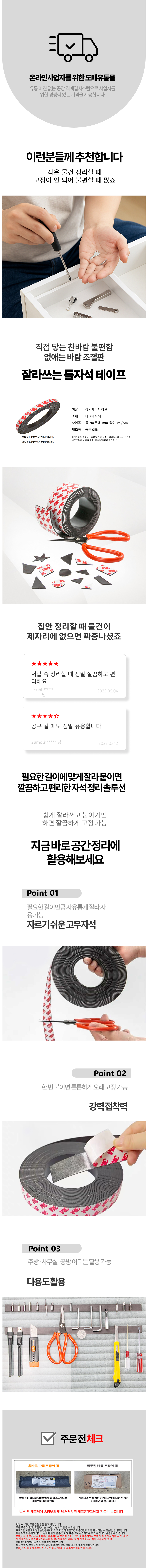 잘라쓰는 3M 테이프 부착 고무 자석 길이 조절 자석