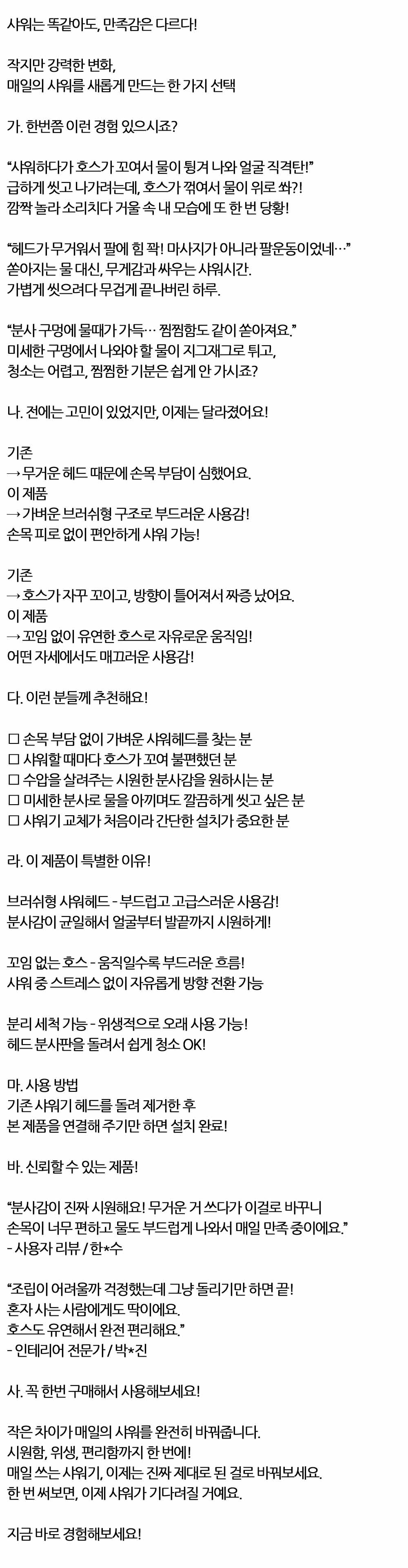 샤워는 똑같아도 만족감은 다르다 샤워 호스세트 2.0m