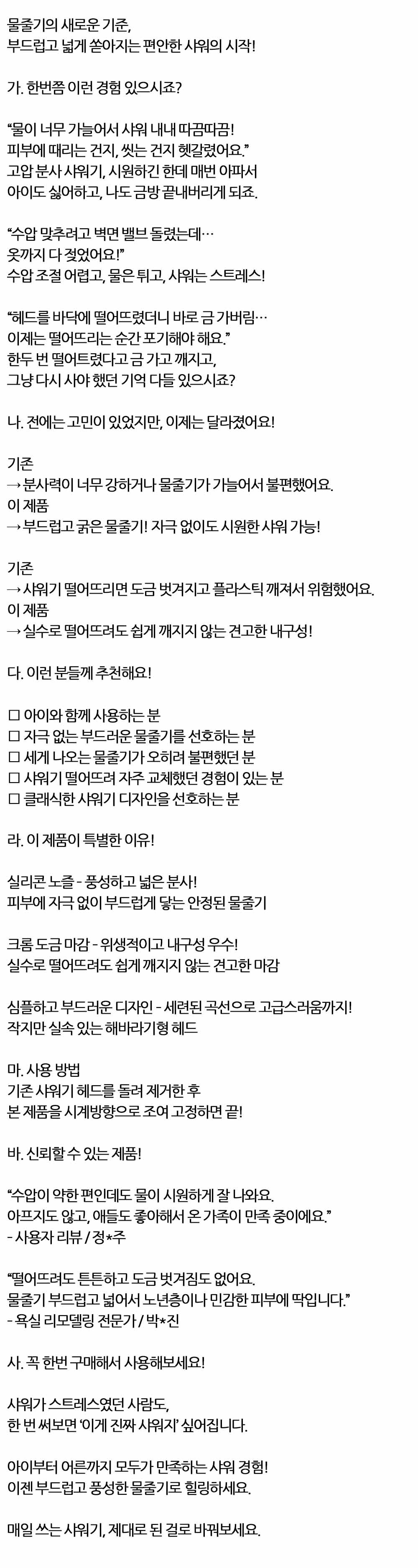 부드럽고 넓게 쏟아지는 샤워 호스세트 3.0m 화이트