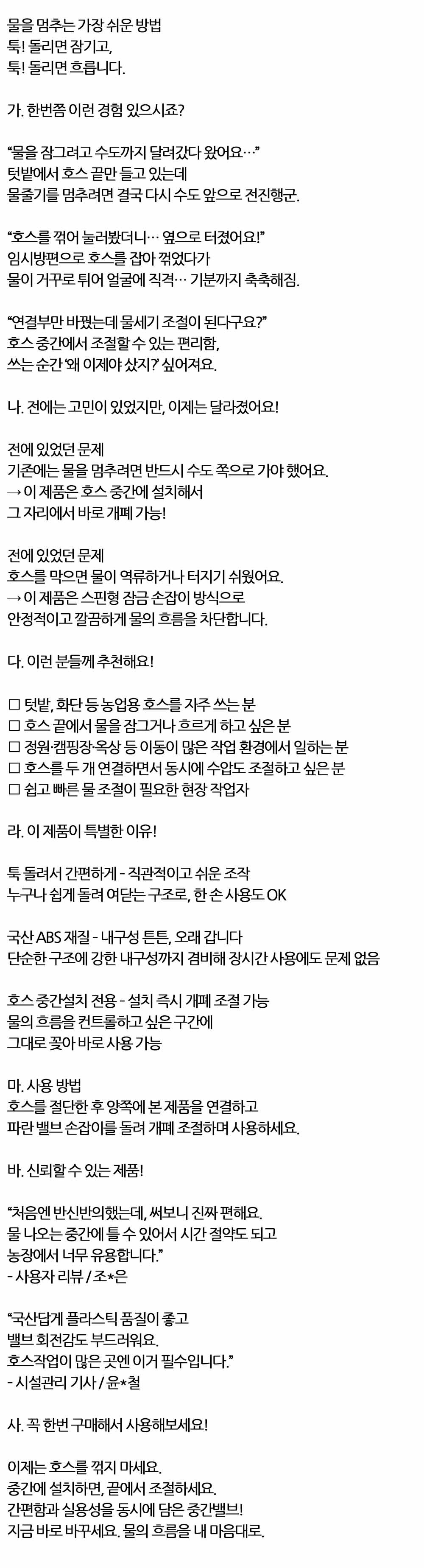 툭 돌리면 잠기고 툭 돌리면 흐릅니다 호스중간밸브