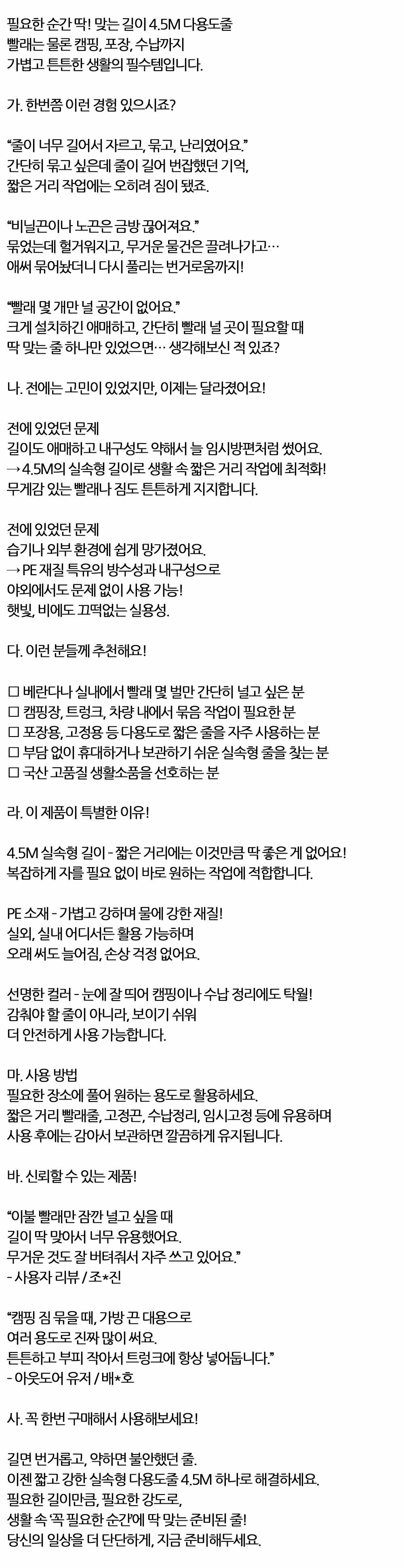 빨래는 물론 캠핑 포장 수납까지 생활 다용도끈 4.5M