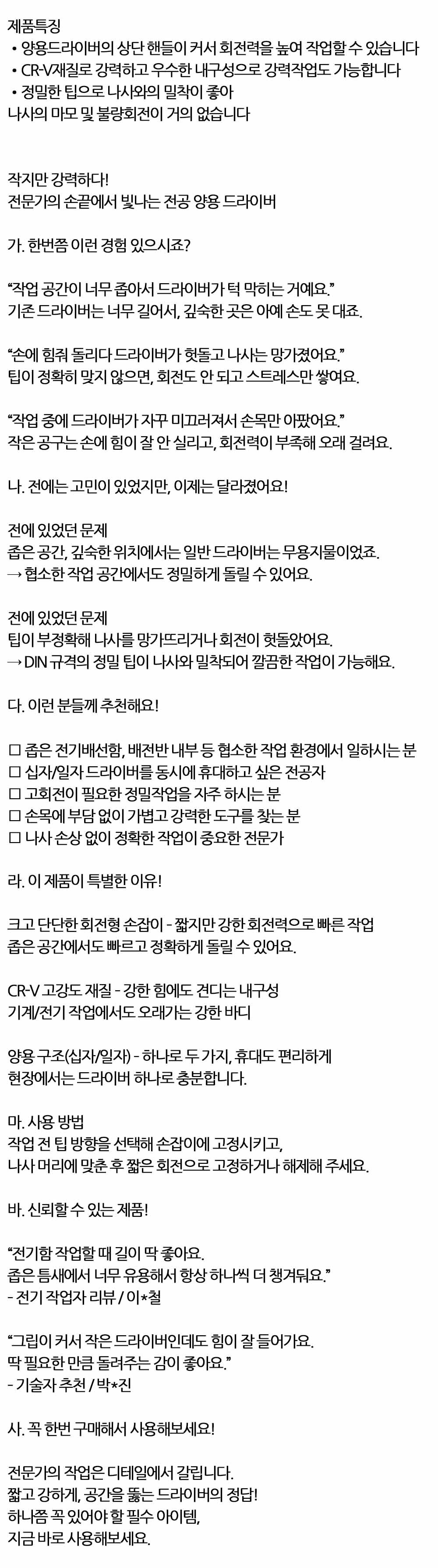 좁은 공간에서도 빠르고 정확하게 양용드라이버 100mm