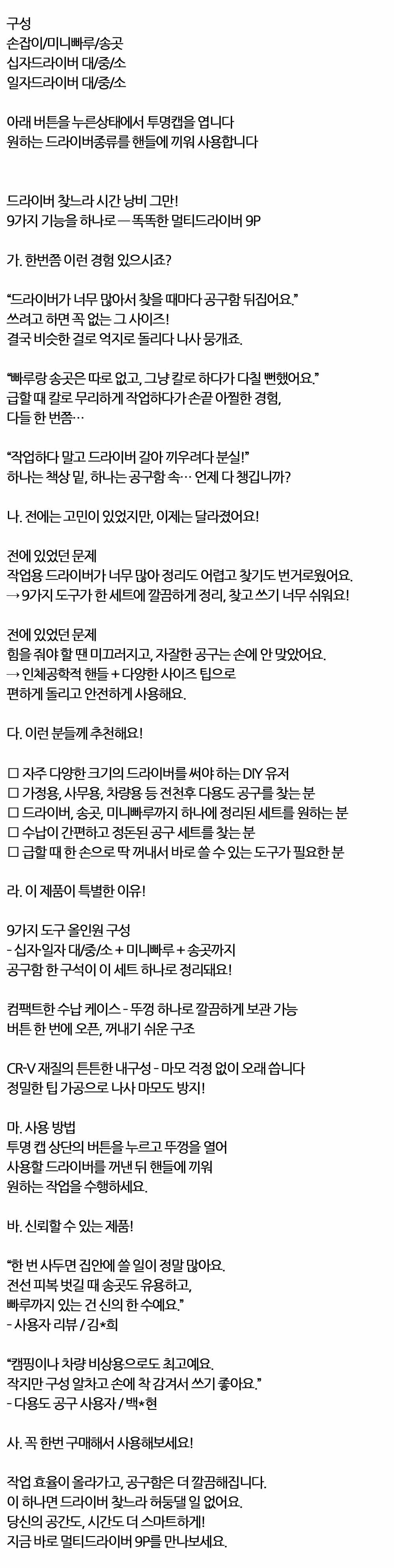 9가지 도구가 한 세트에 깔끔하게 정리 멀티 드라이버