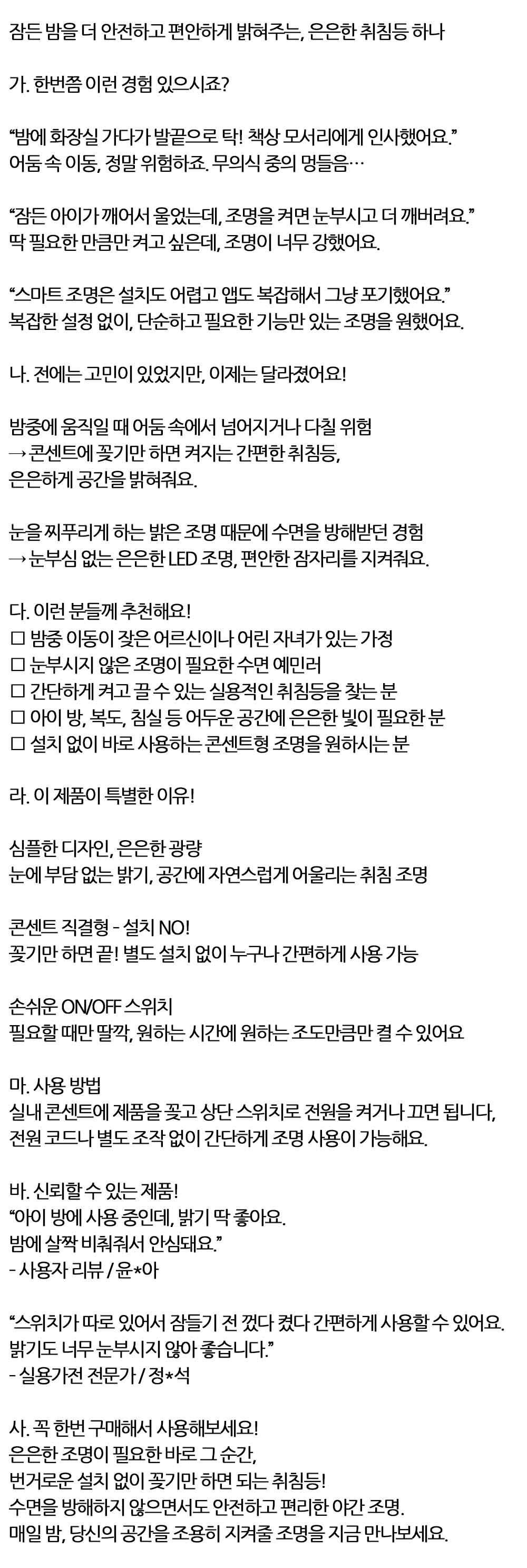 잠든 밤을 안전하고 편안하게 밝혀주는 화이트 취침등