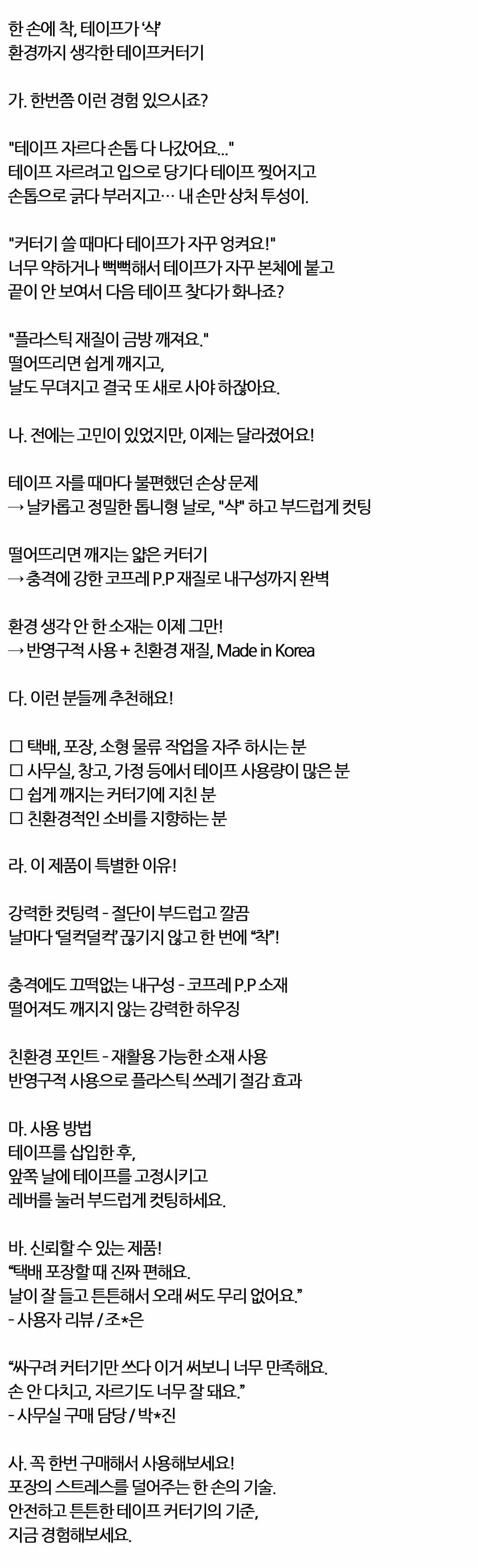 강력하고 날렵하게 샥 잘라주는 포장용 테이프 커터기