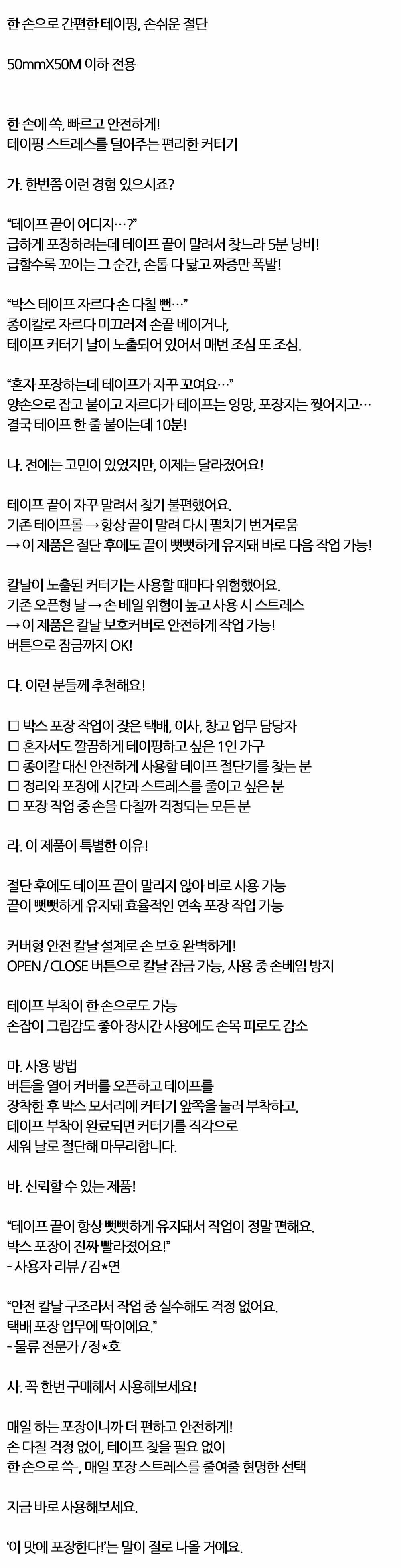 한 손에 쏙 빠르고 안전하게 포장 작업 테이프 커터기