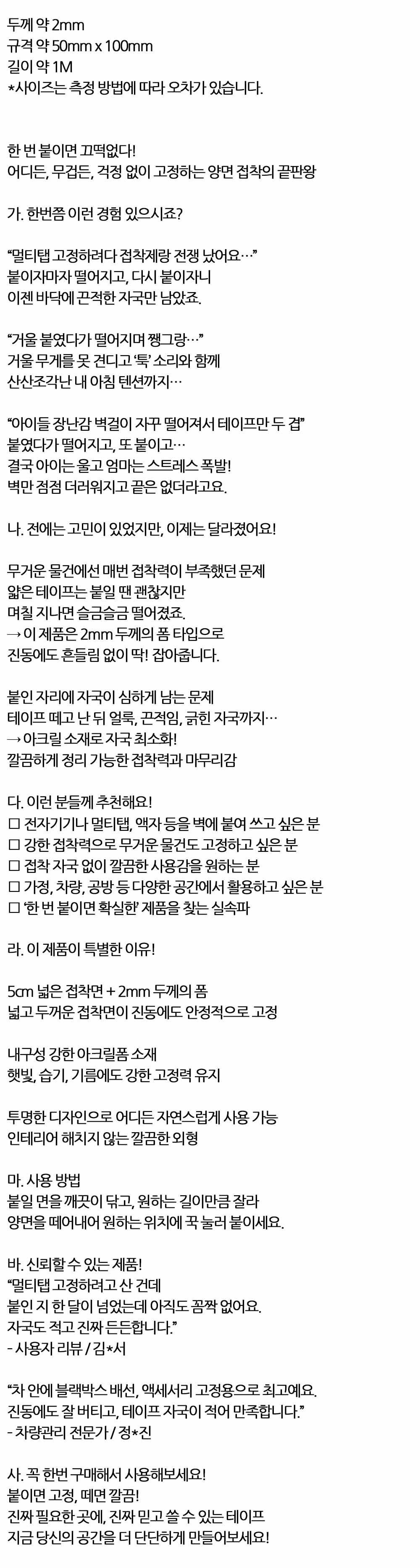걱정없이 고정하는 접착의 끝판왕 폼 양면테이프 특대