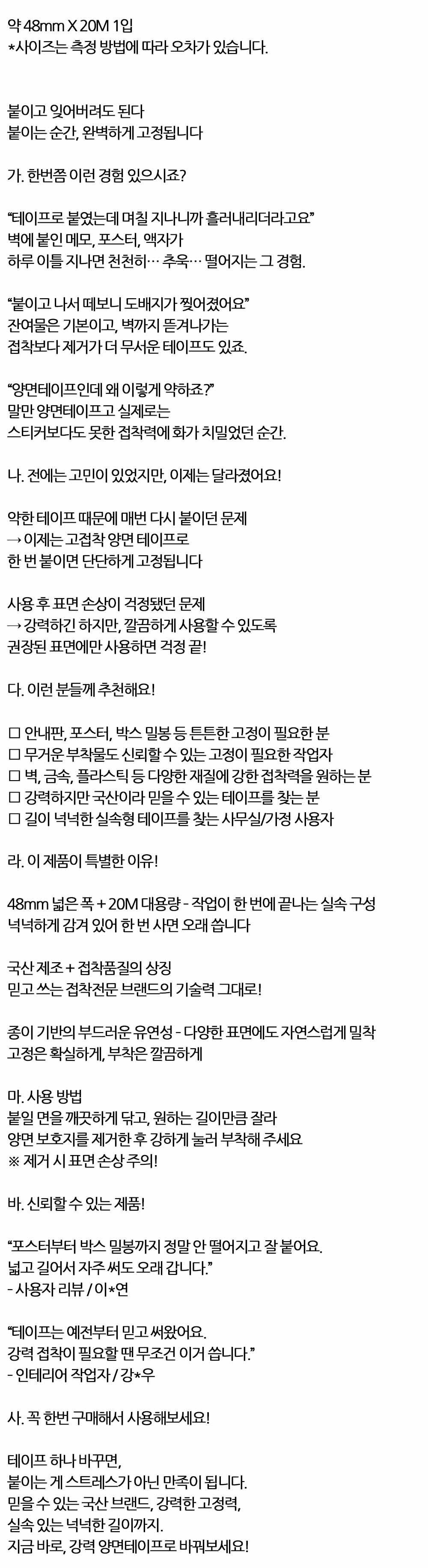 붙이면 단단하게 고정됩니다 강력 양면 테이프 1입