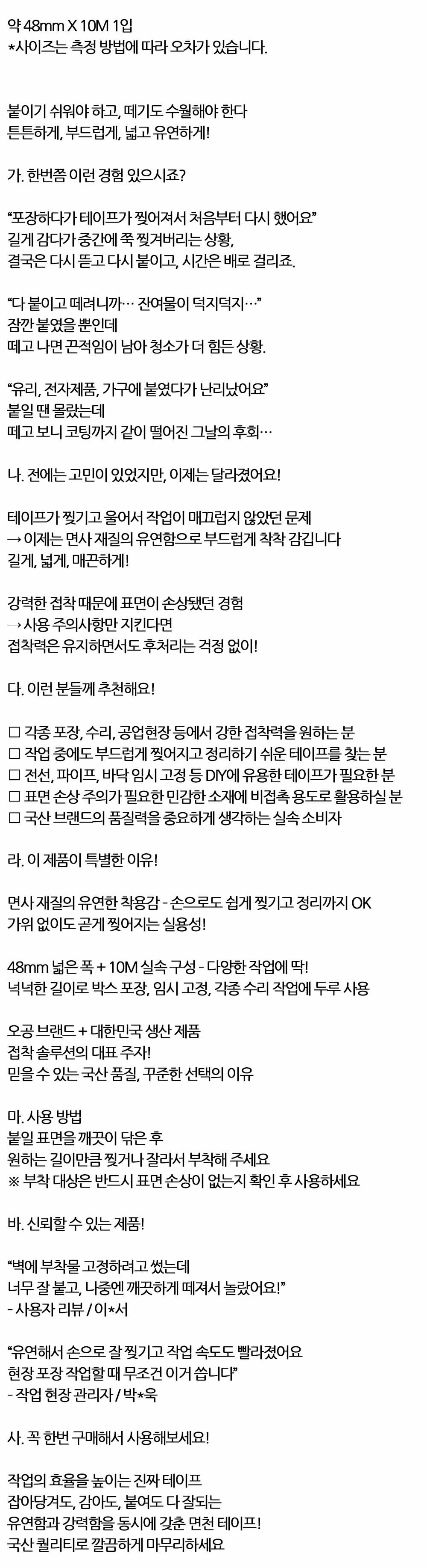 포장 수리 공업 임시고정 작업 만능 녹색 천테이프 1P