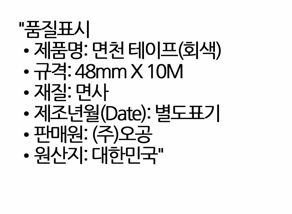 포장 수리 공업 임시고정 작업 만능 회색 천테이프 1P
