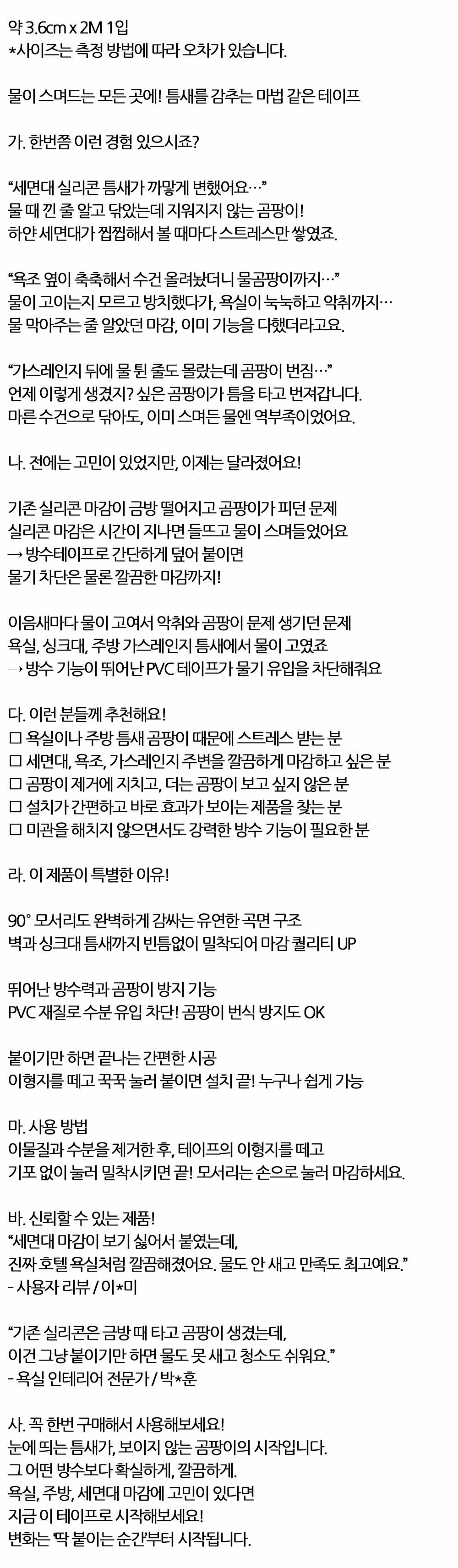 물이 스며드는 곳에 틈새 감추는마법 백색 방수테이프