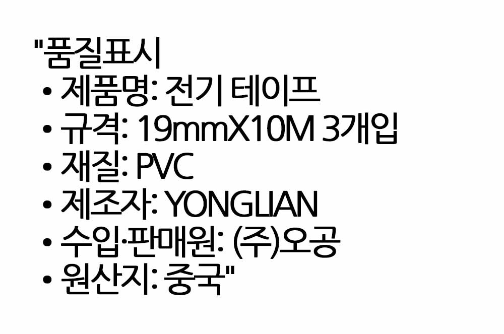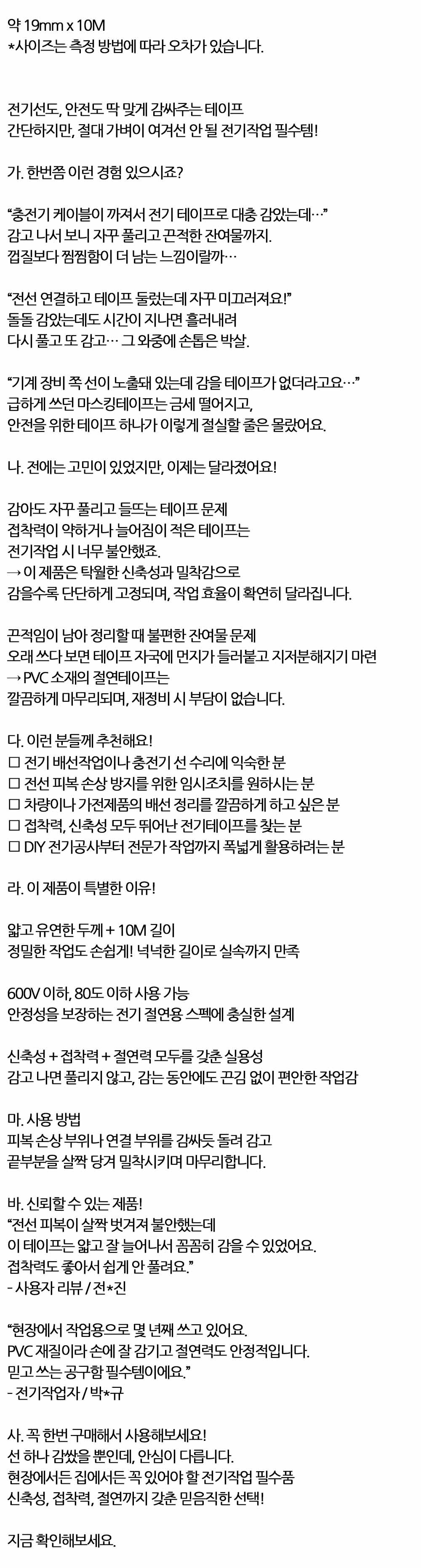 배선작업 가전제품 배선정리 전기테이프 19mm 10M 3P