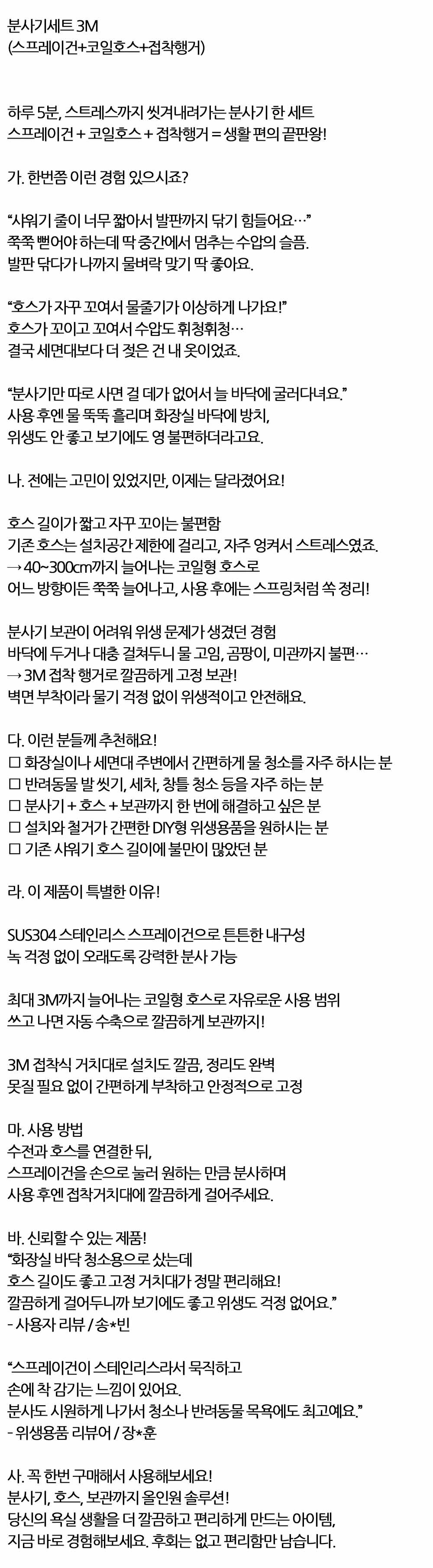 벽면 부착이라 물기 걱정 없는 무타공 분사기세트 3M