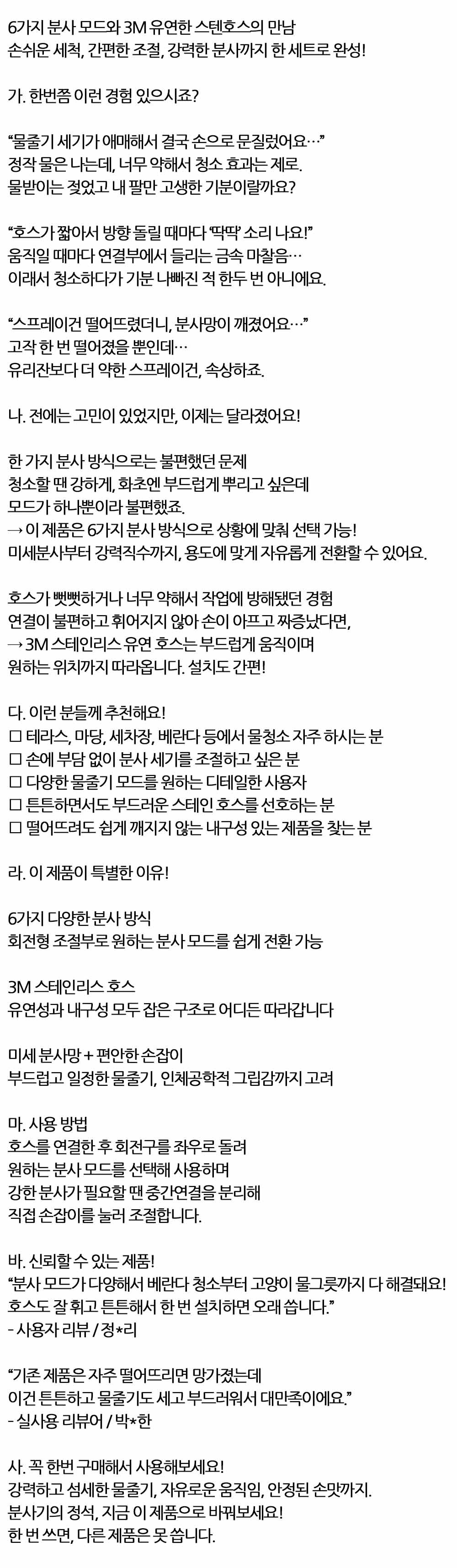 손쉬운 세척 6가지 분사 모드 베란다 스텐호스세트 3M