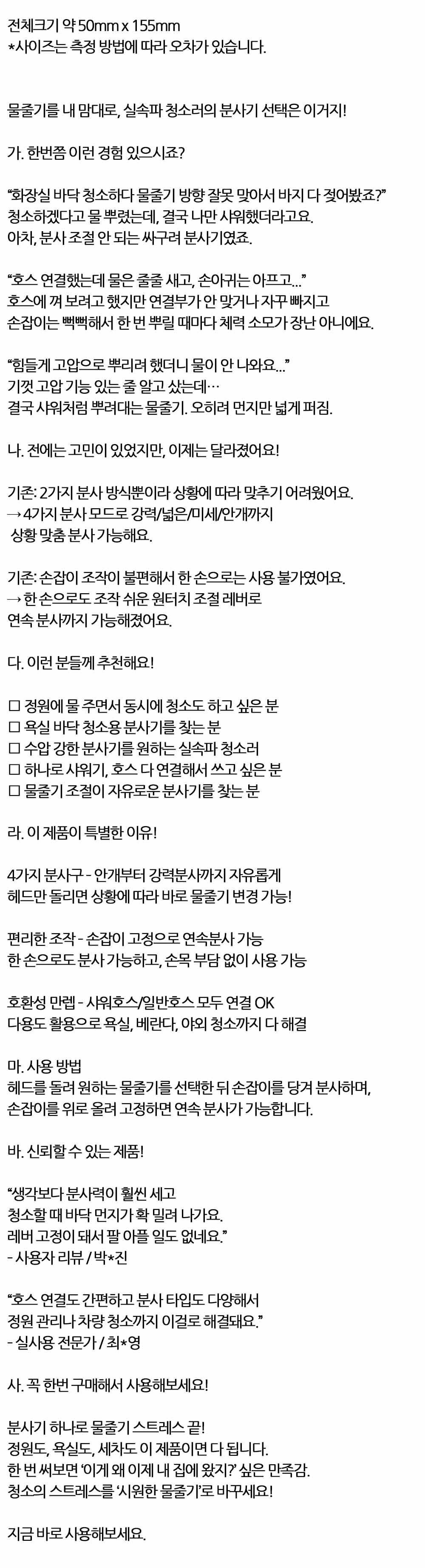 강력 넓은 미세 안개 4가지 분사모드 상황맞춤 분사기