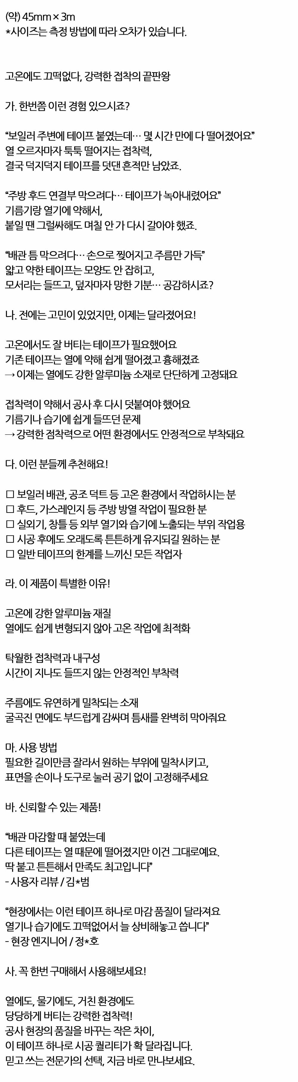 공사현장 보일러배관 고온에 강한 알루미늄 테이프 1P