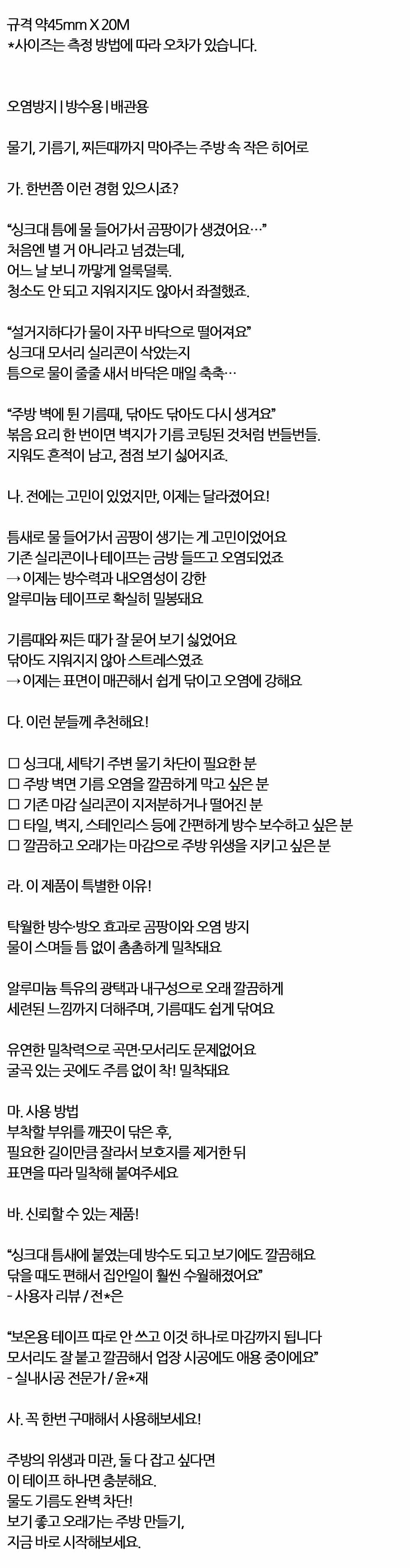 싱크대틈새 주방기름때방지 방수 알루미늄 테이프 1입