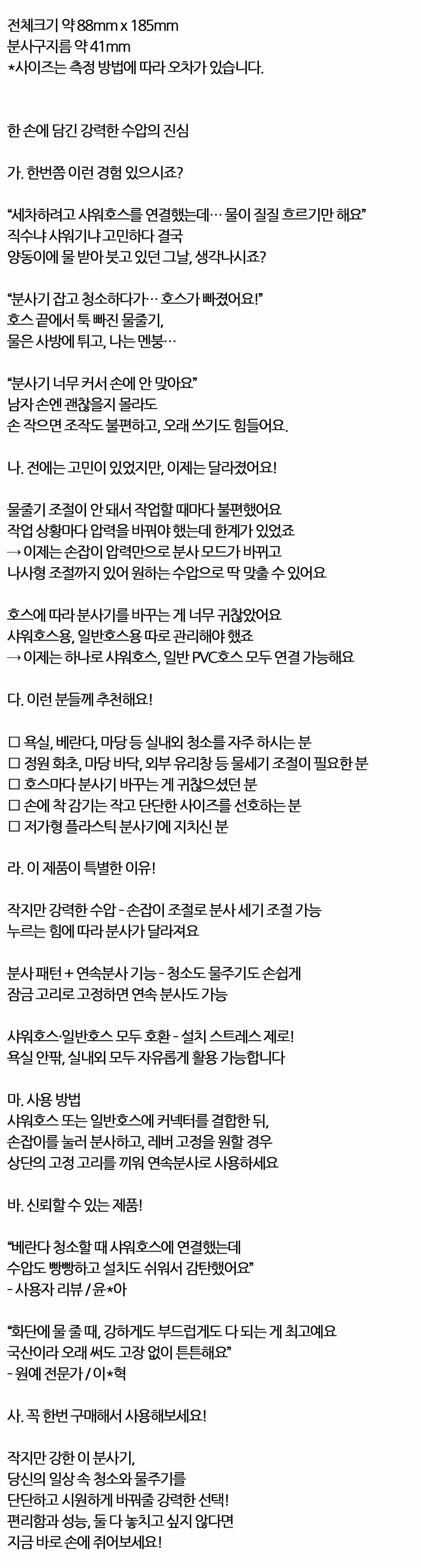 분사패턴조절 연속분사기능 샤워일반겸용 분사기 소