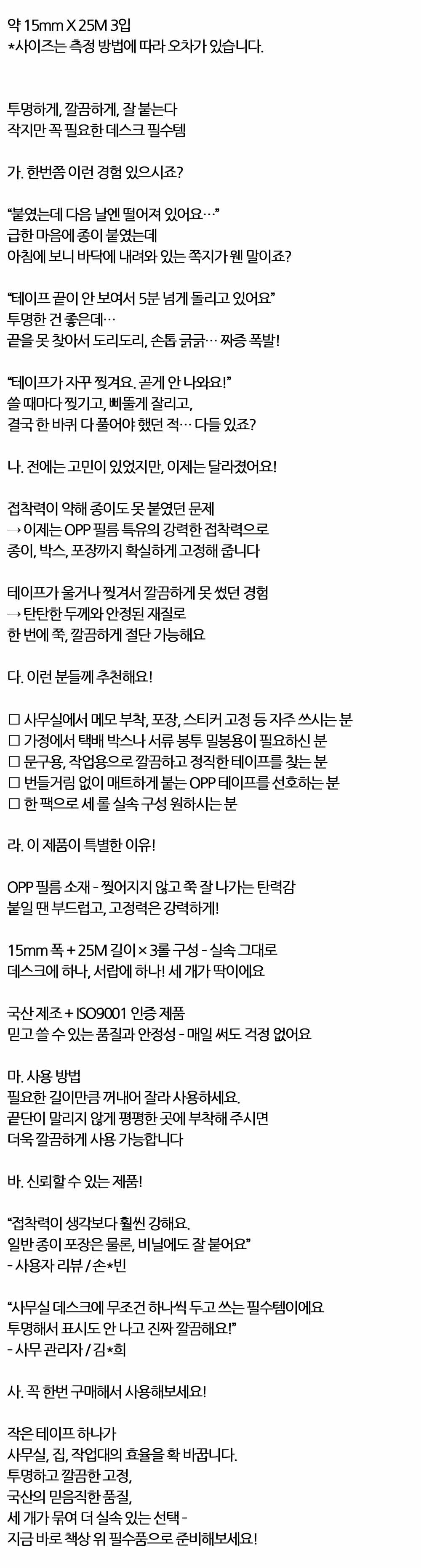 사무실에서 메모부착 포장 데스크 투명테이프 15mm 2P