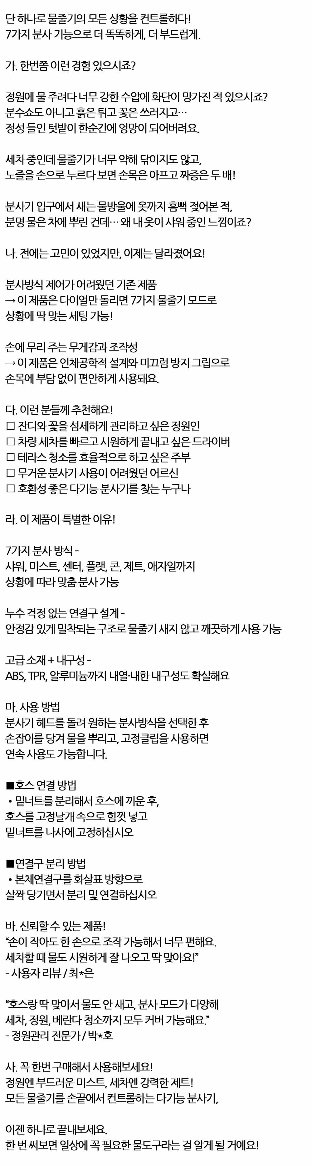 7가지 분사 기능으로 더 똑똑하게 더 부드럽게 분사기