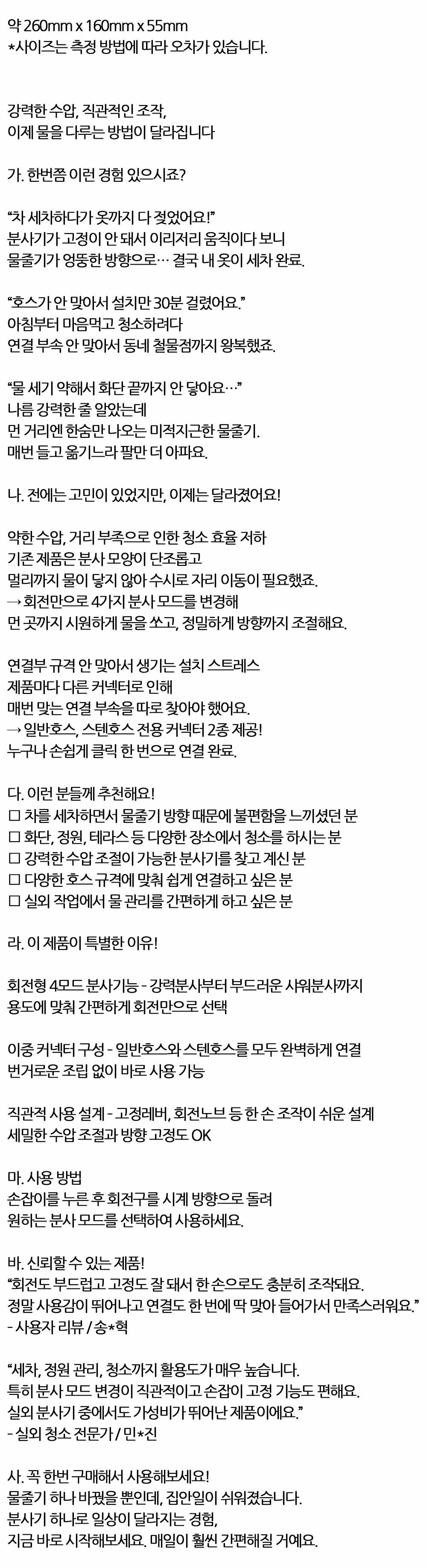 강력분사부터 부드러운 샤워분사까지 다기능분사기 대