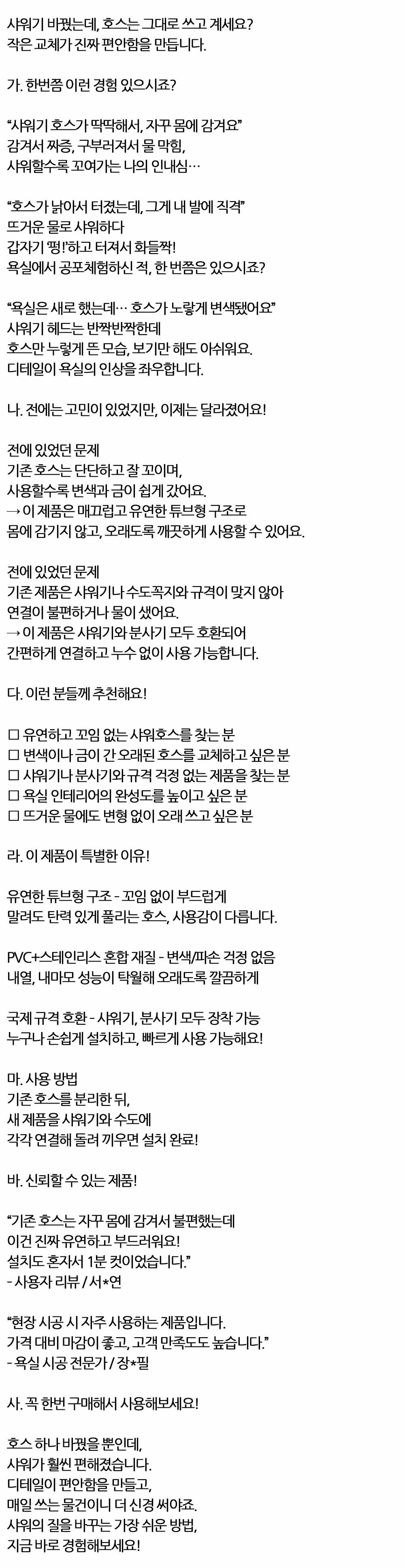 유연한 튜브형 구조 꼬임없이 부드럽게 샤워호스 1.5M