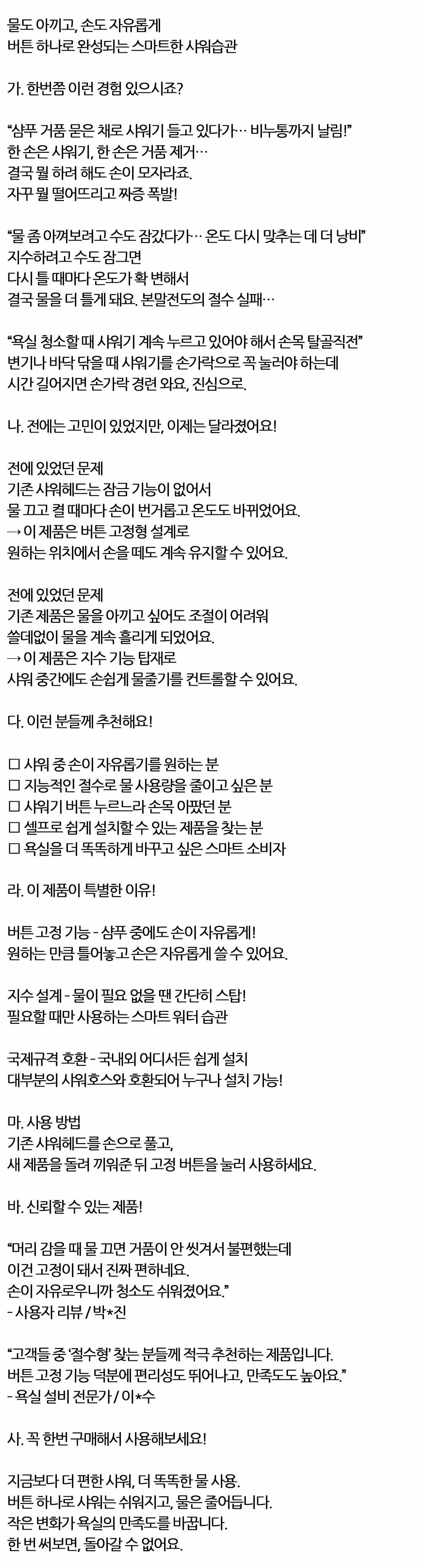 물을 너무 많이 틀어놓은 것 같아 찜찜 절수 샤워헤드