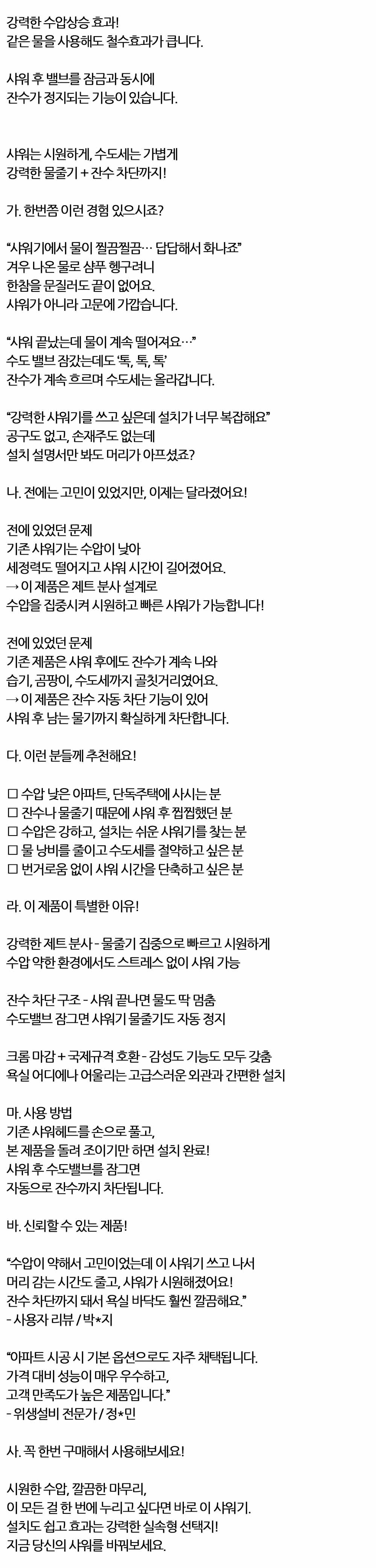 물줄기 집중으로 빠르고 시원하게 제트 분사 샤워헤드